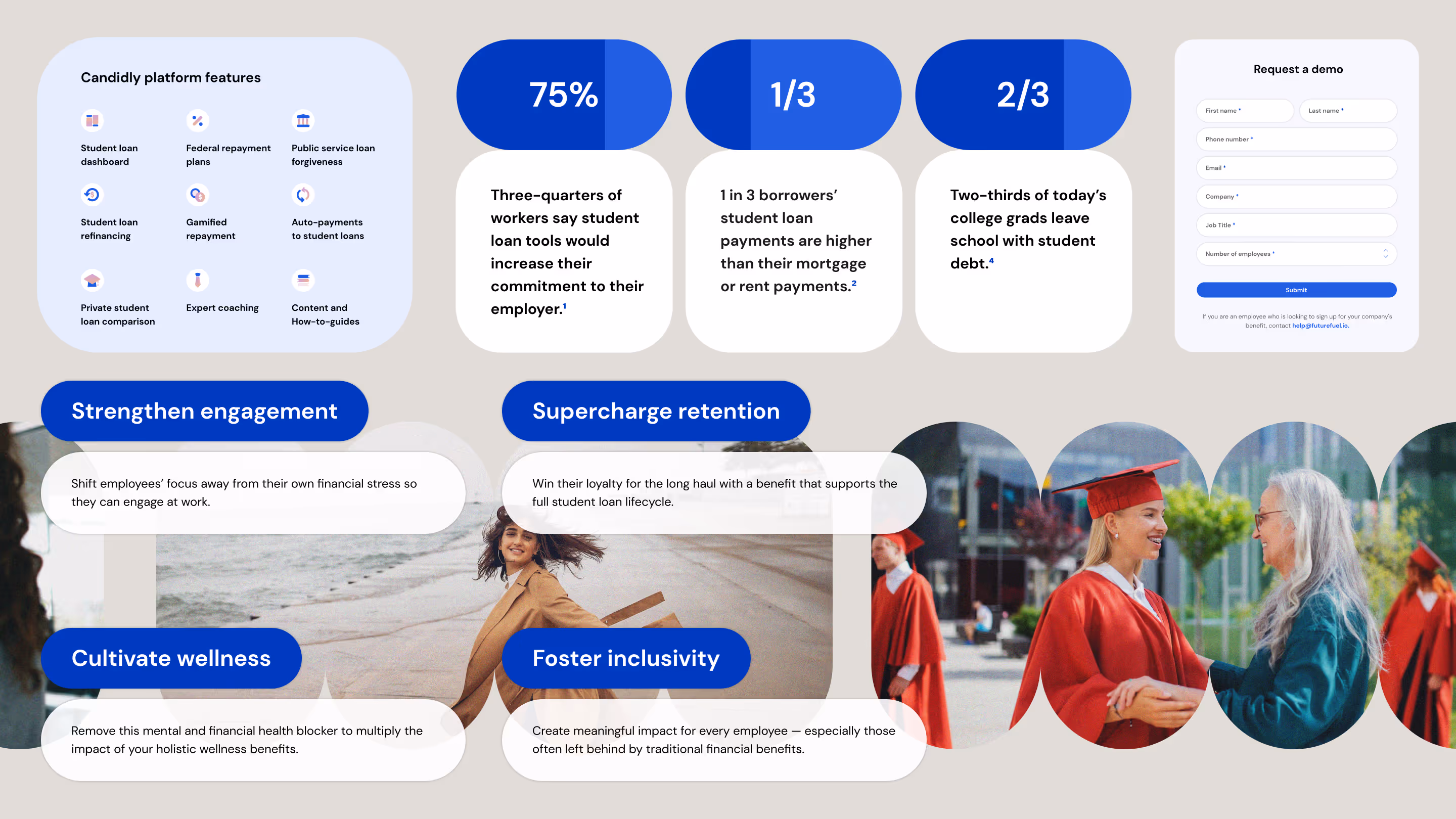 In 2022, Candidly approached Wunderdogs for comprehensive brand development and website creation as they prepared for significant company growth. The challenge was multifaceted: transforming conversations around student debt from shame and isolation to confidence and transparency, while building an enterprise-focused brand that would resonate with companies seeking to support their employees' financial wellness.