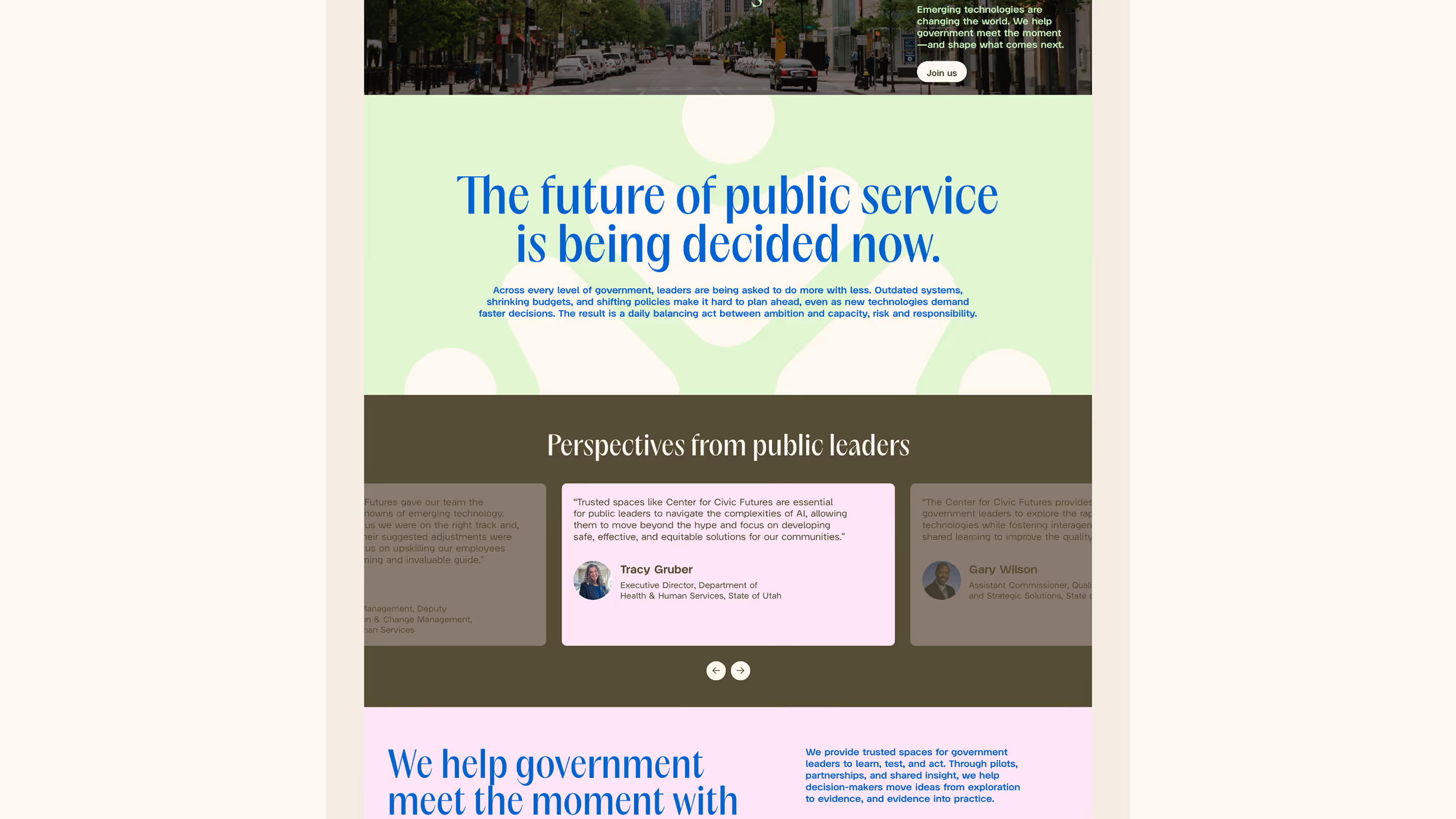 The Center for Civic Futures needed to feel like something new, both technically credible and future-facing, but grounded in the complex human reality of how government actually works.