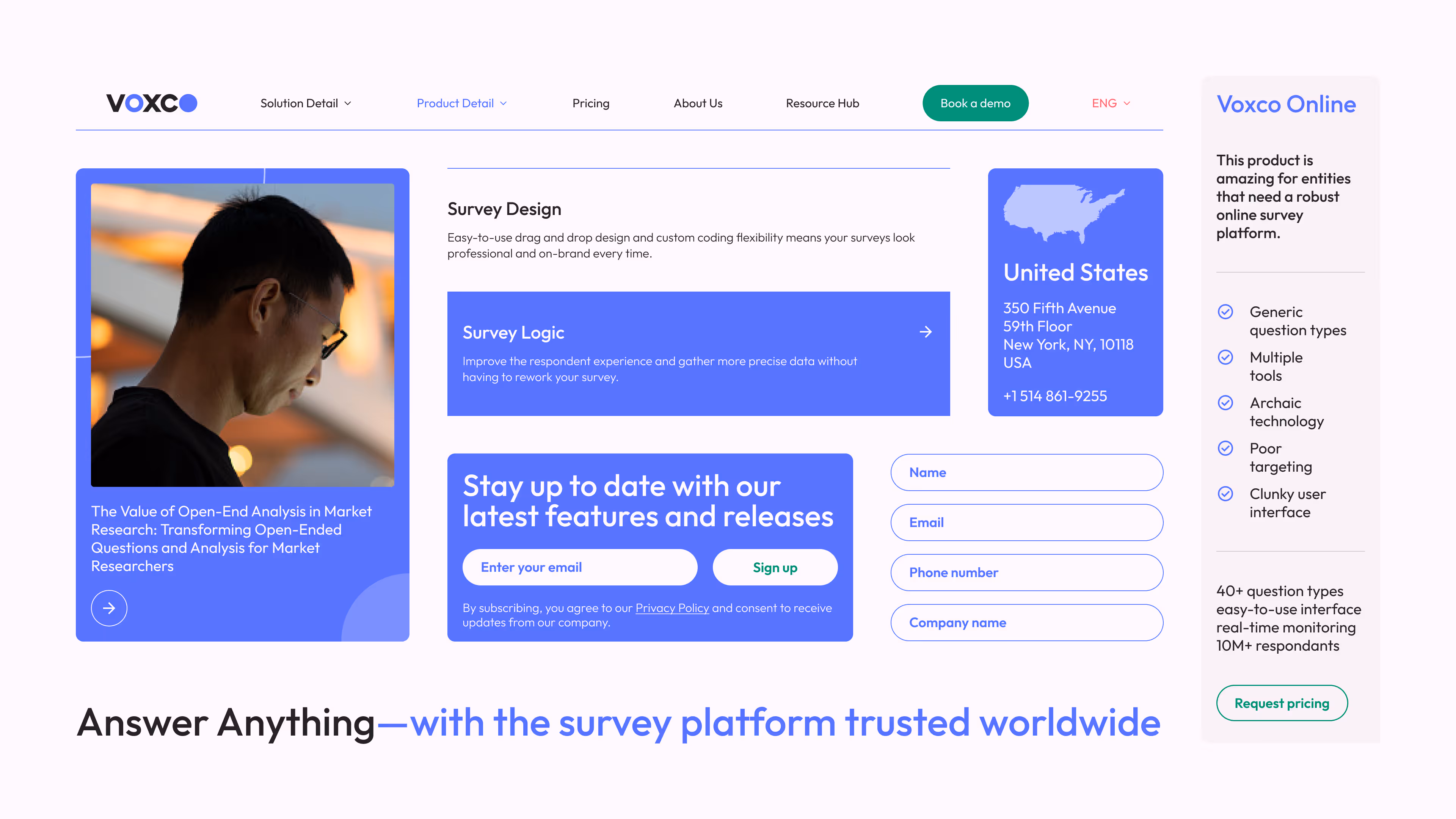 Need for market differentiation: In a saturated research tech space, Voxco needed to clarify what set them apart: a legacy of trust, a commitment to innovation, and a deep understanding that great research tools must serve real human needs.